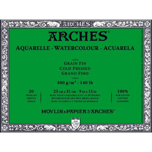 Arches Cold Pressed 140lb Watercolor BlocksThe worlds best known fine art papers arches is mouldmade from 100% cotton linters. This gives them stability strength and exceptional tactility. Arches papers are neutral pH which assures their archival quality. Since 1492 every sheet of paper at the Arches mill in Lorraine France has been carefully manufactured by master craftsmen. Today Arches assures you of the same superb qualities that have made their papers the most preferred choice of demanding artists for five centuries.